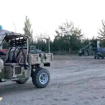 这是四轮超轻型山猫全地形车,仔细看驾驶位上根本没有人,后面的小车厢里还装了物资,但是头顶有个小蘑菇,没猜错的话就是高阶自动驾驶必备的激光雷达。因为中国新能源汽车的快速发展,高阶自动驾驶现在已经完全白菜化,军用车辆用上这玩意儿是必然结果。